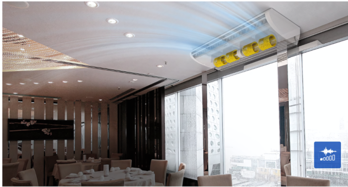 Мощные напольно-потолочные кондиционеры Samsung, представленные в серии AC-MNCDKH/EU, оснащены компрессорами типа BLDC, отличающимися повышенным уровнем износоустойчивости, точности в поддержании заданных параметров работы и пониженными шумовыми характеристиками наружного блока. Внутренний блок также работает, создавая минимальную шумовую нагрузку, благодаря усовершенствованной конфигурации турбины и улучшенной конструкции двигателя вентилятора.